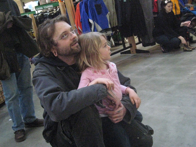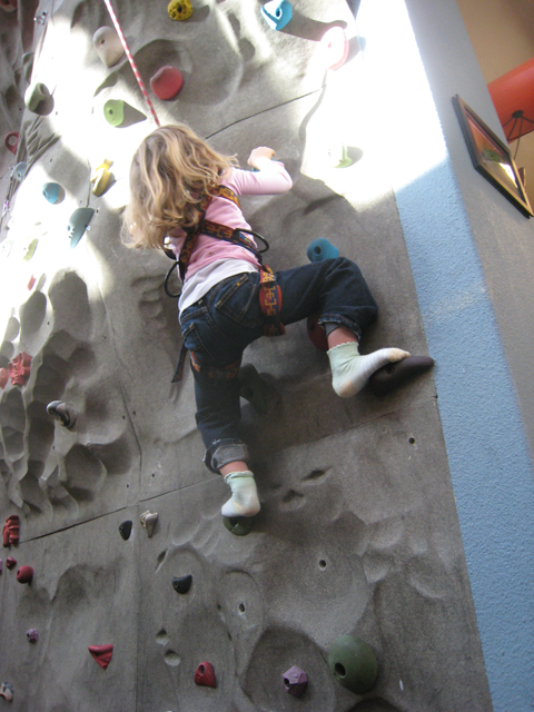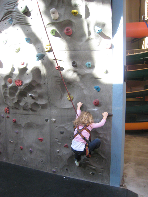 Anyway, we do fun stuff around here too. We went ice skating on the weekend, well, they skated, I took pictures and read my book in a cozy armchair with sunlight blazing all over me…Then a trip to Mountain Equipment Co-op and a fun climb up the practice wall.