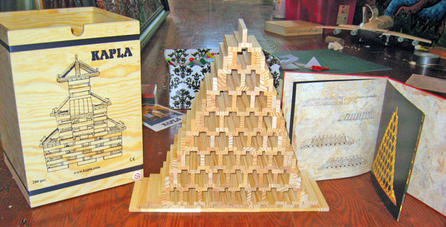 Lucky for me, I live with a newly 5 year old who got crazy amounts of presents for her birthday. One such gift (from Oma?) arrived at our house a few weeks ago and has sat untouched since then. I got the bug to build today, so I helped myself to the blocks and built a pyramid. These blocks are great, perfectly finished, smooth and flat, and they smell so good…Then I also got the pleasure of smashing it to the ground.