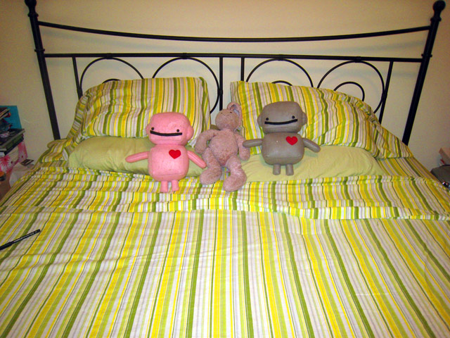 They really are cute, I know. I didn’t make them, nor do I own them. They mysteriously appeared in our bed last week…