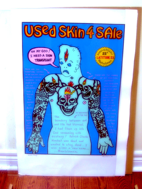 We were awakened by a loud CRASH CRASH in the middle of the night that scared the crap out of me and left me laying in bed wondering if someone was breaking in to steal my book collection. When I got up this morning I found that the wire in the back of the frame on this print by ManWoman had broken and it was laying on the floor. Lucky the glass didn’t break.