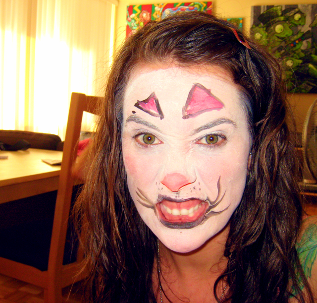 I ended up washing it off about 3 hours later because having a serious conversation with a person painted like a kitty is hard. For some people.
