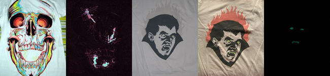 They are both awesome. The skull one is super bright, with the glow in the dark fairies hidden on it. The vampire one is crazy, with the red flames and veins showing up in the sun and the eyes and teeth in the dark. Ari and I tested them both in the bathroom (I’d already tested once in my closet, where I took the pictures!) and they glow really well!