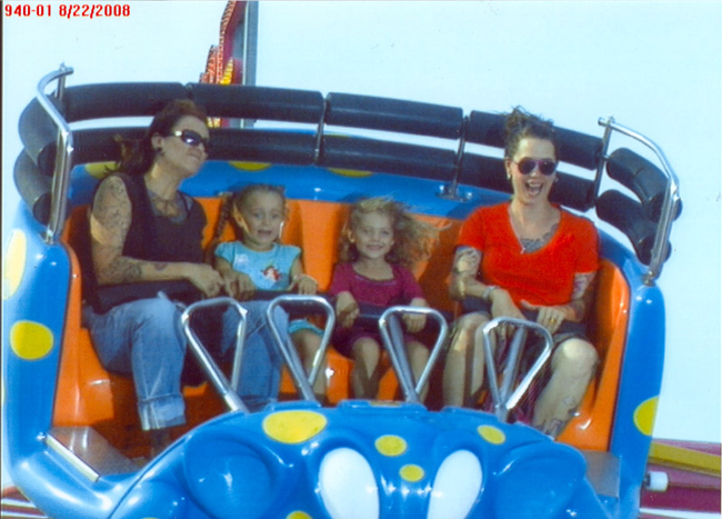I love this picture that was taken by the auto-picture-taker on the Crazy Cat ride at the CNE. Across is Joan, Anika, Ari and me.