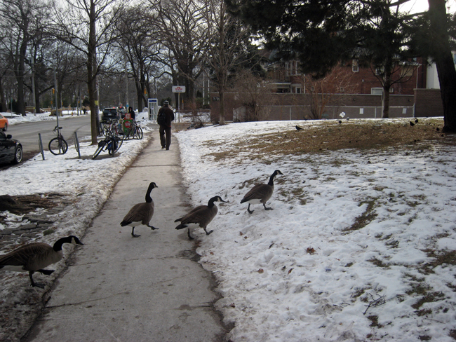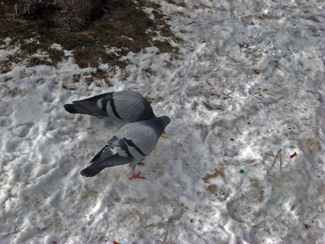 I know, the last picture is not of geese, but any regular reader of my blog knows how I feel about pigeons (ie, love them). These 2 were just pecking around in the snow minding their own business, trying not to associate with the geese who were taking over their world.