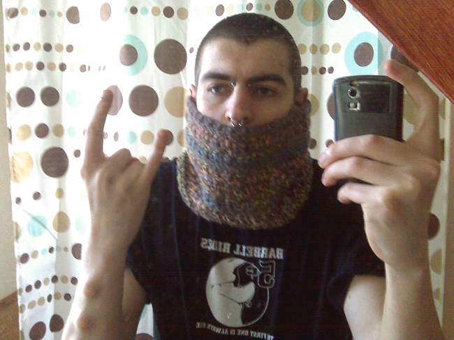 I hadn’t sold something in a long time and I had forgotten how happy it makes me. Here’s Gaz who bought the brown dickey I made mostly while flying to Mexico. He says “I knew it would be warm and comfy, but not THAT much. Its awesome :)”