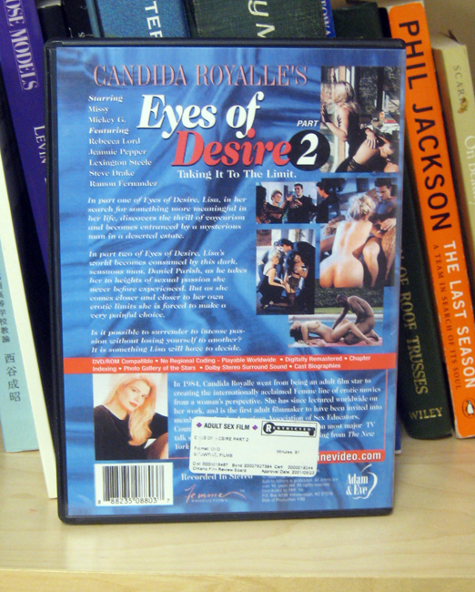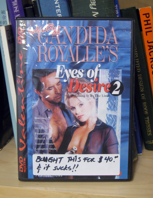 See? In the middle? It’s a dvd case that’s been filed backwards on the shelf. Intriguing. Of course I had to pull it out, and here it is: