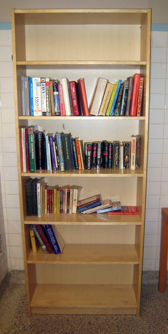It used to be a small pile on a side table but someone must have dumped a shelf recently and it is great. I mean, there’s nothing I want (although I have taken a book once because I felt I had to after looking at them for so long) but it’s a great community thing.