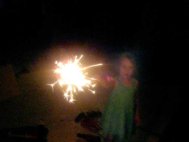 We survived, but only just. The empty lot is pretty small (so that made for a quick and easy clean up) but it also meant we were all packed in and at the mercy of the fireworks. Ari and I started with sparklers inside, to get warmed up: