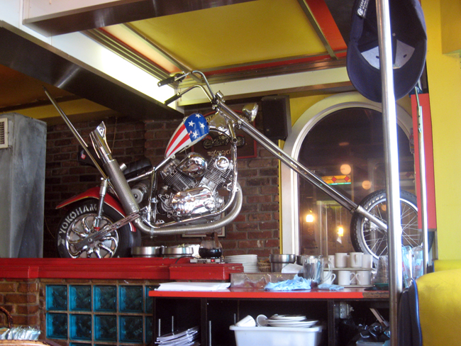 Then we went through the side streets and looked at street artists work and wound up at the infamous Foufounes Electriques, which I thought was a full on punk rock bar, but seems to be a disco in it’s off times. And was originally a gay bar. Go figure. It was cool, sort of like Dee’s with less grafitti and more art. I ended up heading home early, on my own, that night. I couldn’t take one more minute of sitting on a smoky patio. Ugh. Smoking.