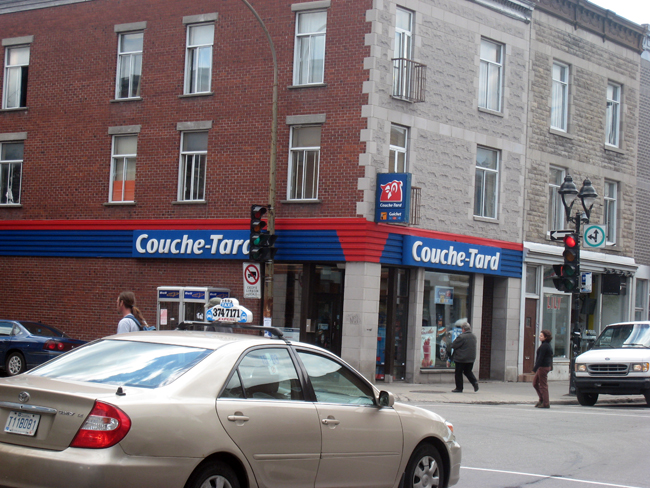 My first day there we (we meaning me, my sister and three of her friends from assorted corners of Canada) all went out to do a little retail therapy. The apartment we rented was great, on a side street on the end of an amazing area, lots of independent retailers and restaurants, bars and deppaneurs. We stopped for lunch and I ate (almost) poutine. Some stores made me laugh: