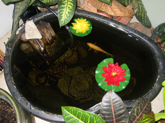 I forgot to mention that I really only bought one present when I was in Montreal and it was for the fish. I was getting worried about the real plants floating in the pond and dying, creating muck. They seem to love these and hide underneath all the time.