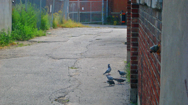 Check out the attitude on the fellow in the back. This was a pack of junior pigeons that had silly feathers and didn’t really know what to do when a giant, zombie chasin’ truck was bearing down on them.