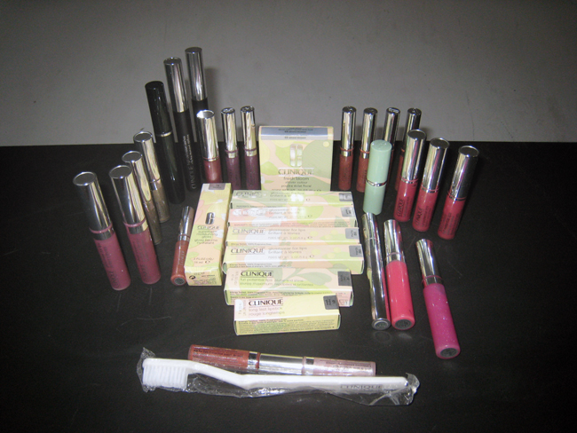2. Clinique. It’s mostly lip glosses and lipsticks, but there’s also mascara, eyeshadow, powder and a toothbrush.