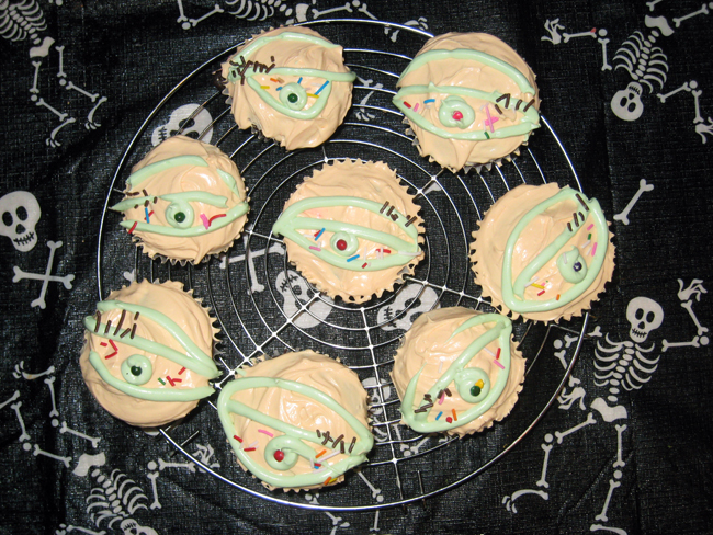 Today I made cupcakes to celebrate Hallowe’en. Nothing like eating sweets on the way out the door to collect more sweets, right? I know Ari will share her bounty with us, she never likes ALL the candy she gets and she does love to be generous. I honestly can’t remember the last time I went out trick or treating, I handed out candy at my house in Windsor-a popular street due to the houses being so close together, easy grabs for candy hunters.