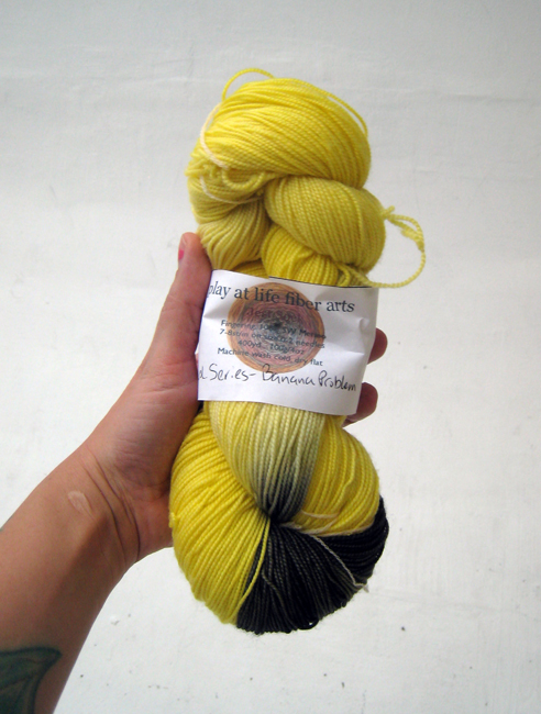 I got some gorgeous yarn in the mail today, it’s called Banana Problem and it’s from play at life fibre arts. It’s sock yarn but at the rate I knit socks, I doubt that it will ever be footwear. And because I am pretty much exclusively knitting gifts for xmas this year, this will go into my stash basket until the new year.