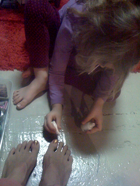From big-baby toe, I got gold, white, pink, black and silver on both feet.