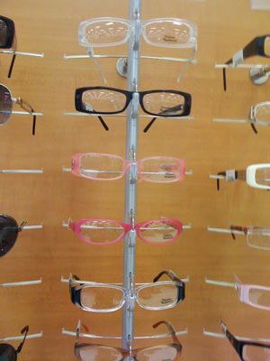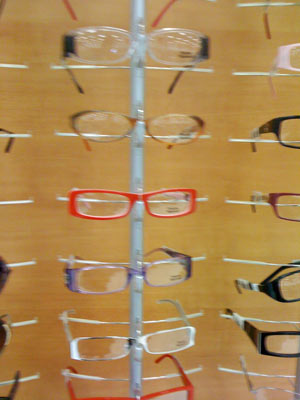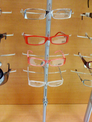 I like the clear/black ones at the bottom of the first picture. And the red frames in the middle. They’re locked down in the store so you can’t actually try them on without asking for help.