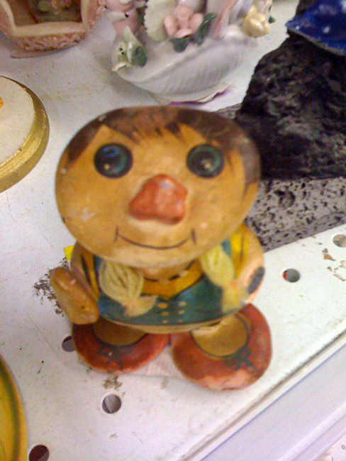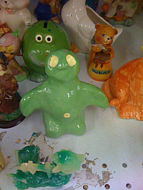I did find some treasures today and if they’d been priced a little lower, they’d be with me right now. The first is this beautiful green sculpture which is reminiscent of my high school project called Reclining Poo (which, incidentally, I broke, glued back together and still have!).