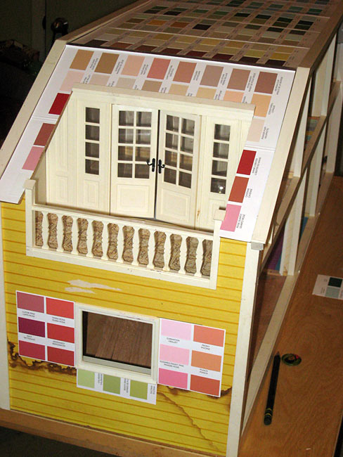 Nothing is glued permanently in place yet, I have to paint all that yellow siding out. I might do a different colour for each wall, I don’t know yet!