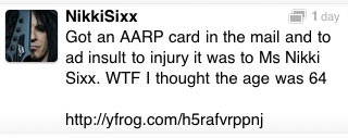 Also funny, this tweet from Nikki Sixx the other day made me laugh: