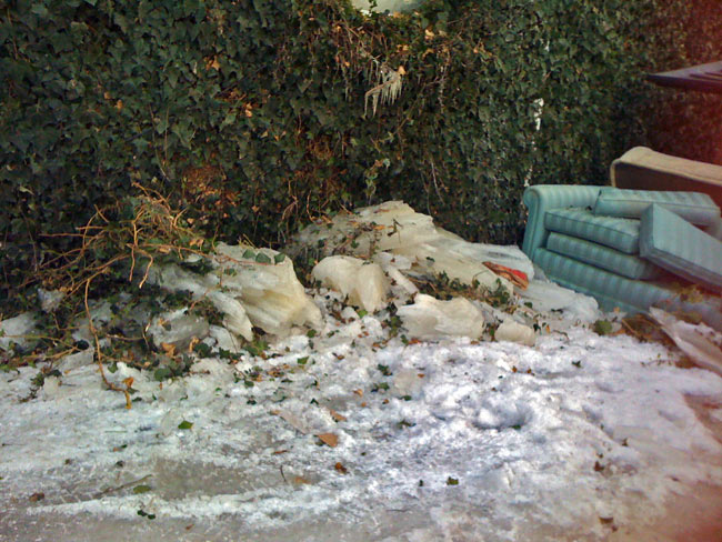 Yes, I know what you’re thinking: Caitlin must live in one classy building if people can afford to throw away such beautiful couches. Well, it’s true, I do live in a class encrusted building. Don’t be jealous, don’t hate. That couch is still there AND it has a friend if you’ve got a truck or a couple strong friends. For free.