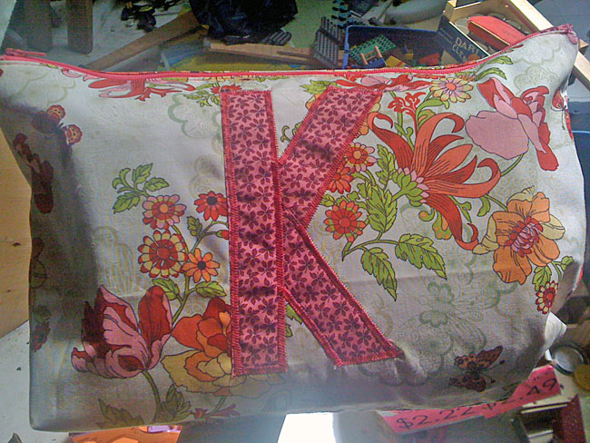 It was Kiran‘s first birthday last week and her party was on Sunday. Shannon and I had a couple gifts but had no wrapping paper so I got to work. I was just going to use fabric tied with ribbon but then I thought I could make something double useful and came up with this: